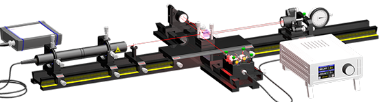This extension provides all necessary optical components to turn the existing Michelson interferometer to a technical one. One triple reflector is mounted onto a translation stage. The piston pin of the provided micrometre gauge firmly touches the back of the moveable triple reflector. The idea of the measurement is to calibrate the display of the gauge against the wavelength of the laser source which forms the secondary standard of a metre. The fringes generated by the movement are counted by the provided forward backward counter in fractions of the wavelength λ like λ/4, λ/8 or even λ/16.