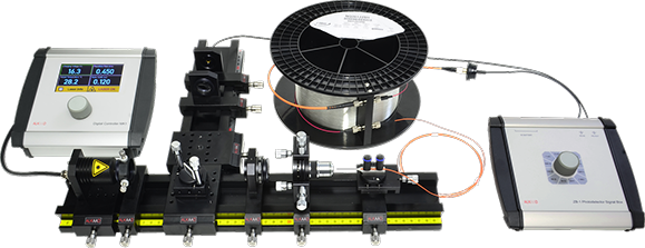 Whatever the reason of the malfunction of communication networks are, the problems needs to be solved as soon as possible.This is the moment of the mission of the "Optical Time Reflectometry" (OTDR). An OTDR is an optoelectronic instrument that uses time-domain reflectometry to characterize and locate faults in optical fibres. The underlying idea is so send a short pulse into the fibre and "listening" to any echoes coming back from it. At each fibre imperfection, especially at the face of a broken fibre a lot of light is reflected or scattered back into the fibre. From the time of flight of the input pulse and the occurrence of the echoes the distance to the faulty position is found and the service team can do their job. However, the OTDR covers more possibilities, it is the only device which can measure the attenuation or losses of an optical fibre non-destructively. Such losses in optical fibres can be caused by several reasons, mainly due to optical and mechanical imperfections during the manufacturing process, or by extra mechanical stress on the fibres like unspecified bending or tension. These days OTDR devices a small and compact and an indispensable tool in optical fibre communication. The aim of this experiment is to set up an OTDR in such a way that the trainees can identify, align and control the required components like the pulsed diode laser, coupling light into the fibre via a polarising beam splitter. The path of the returning light is bended due to its changed polarisation at the beam splitter cube towards the fast photodetector. The returned light intensity carries the information about the losses by an exponential decay in time, upward peaks for reflections and downward peaks for losses at joints caused either by splices or connectors. The experiment comes with two drums carrying each 1000 m of optical fibre. The fibres are interconnected via two ST patch cable whereby one end of each fibre is left as it is to teach fibre stripping and cutting.
