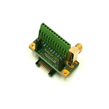Koheron TB300 is a breakout board for the CTL300E laser diode controller. It includes a 12-position terminal block for power supply and IOs and an SMA connector for the modulation input.