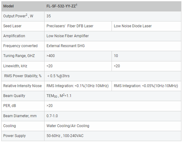 PreciLasers offers external resonant SHG fiber laser , which uses ultra-narrow linewidth fiber DFB laser as seed, all fiber amplifiers to boost the output power and external resonant SHG cavity to get high power visible or UV lasers.