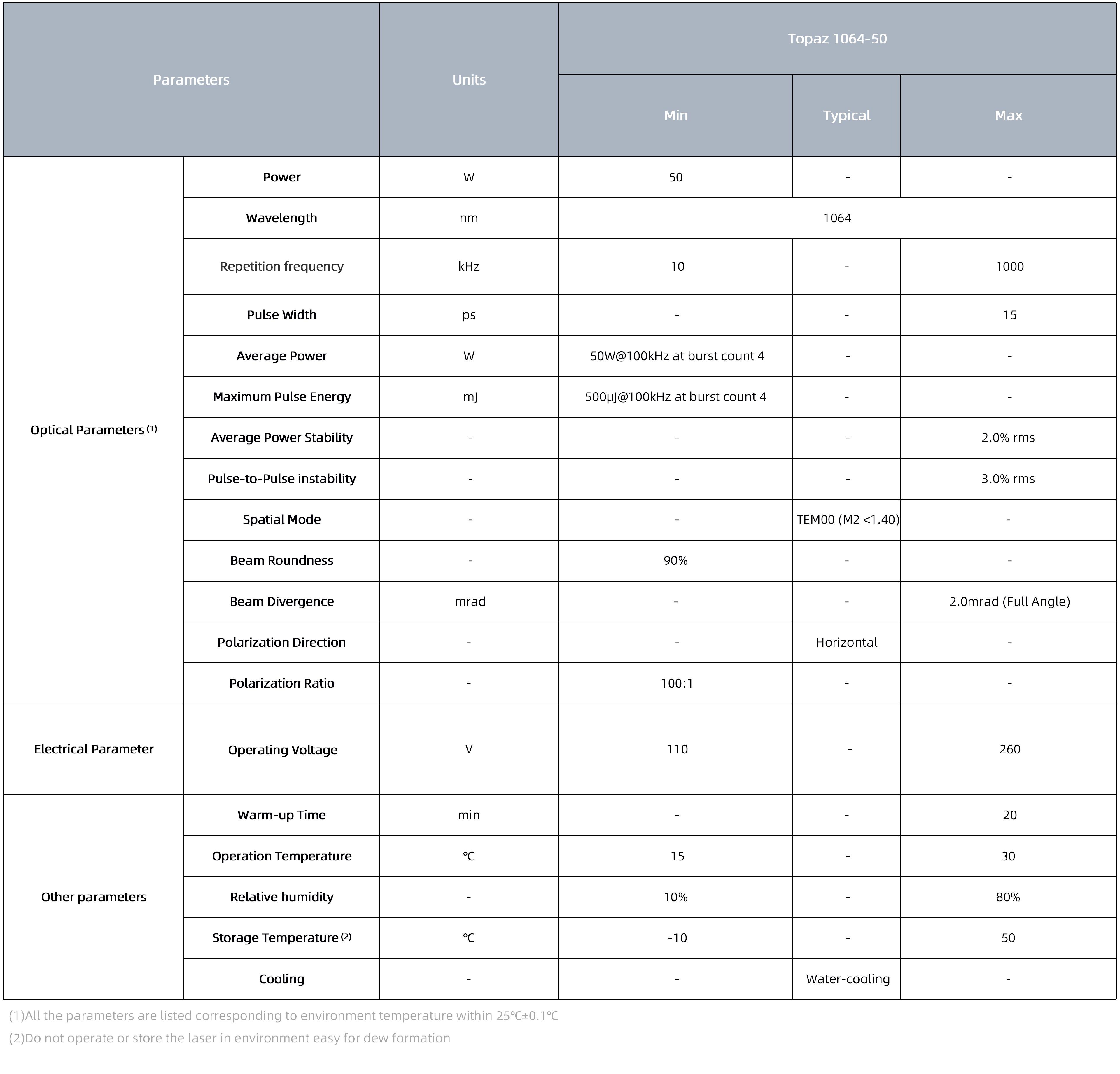 - Pulse Width:<15ps