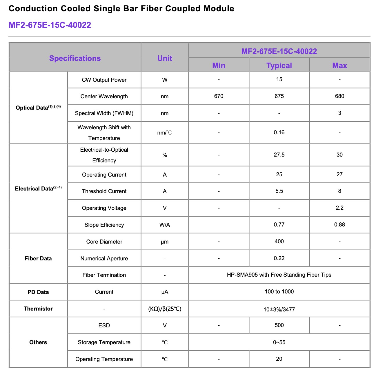 BWT Conduction Cooled Single Bar Fiber Coupled Module