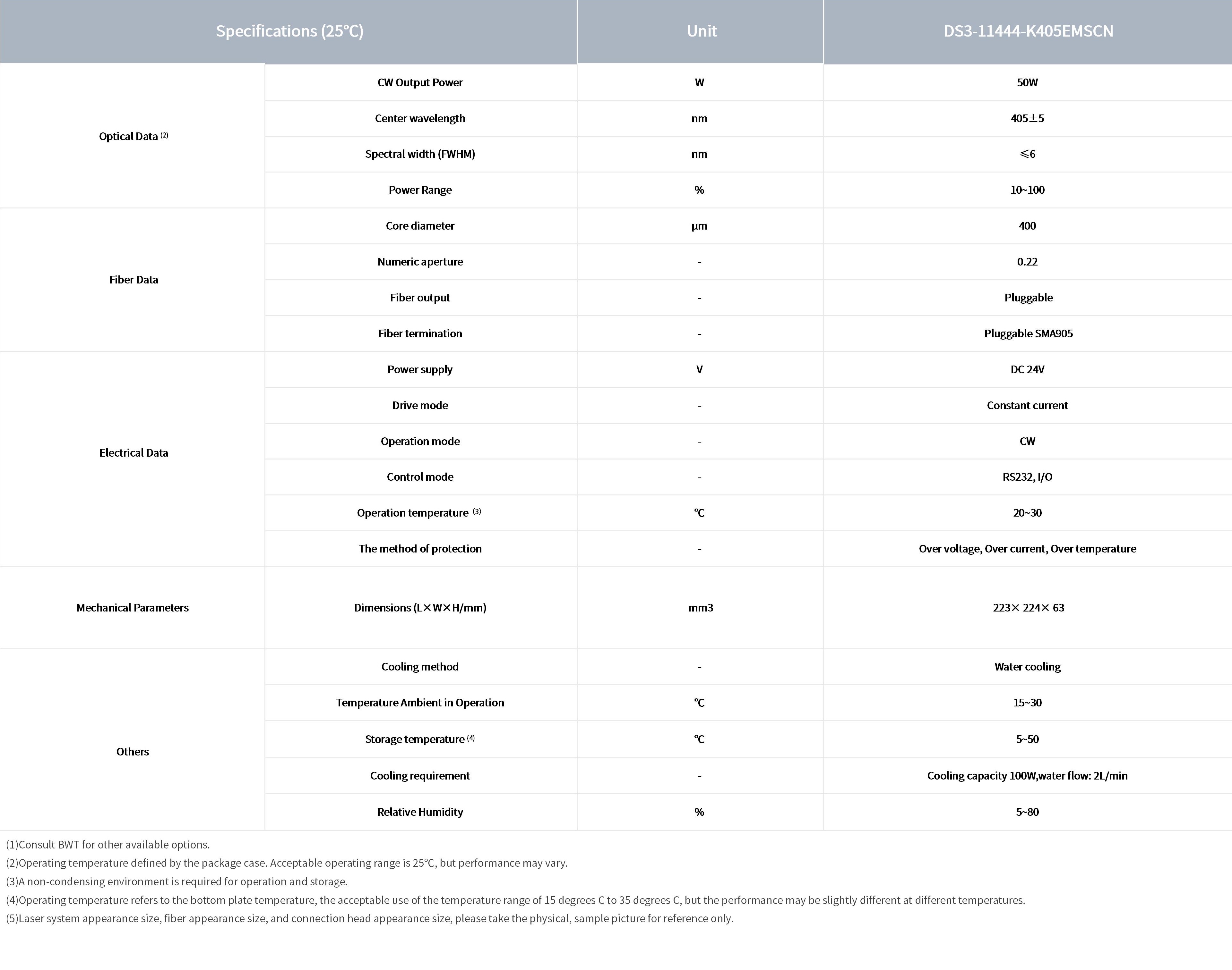 BWT 405nm Fiber Coupled Diode Laser Subsystem 50W