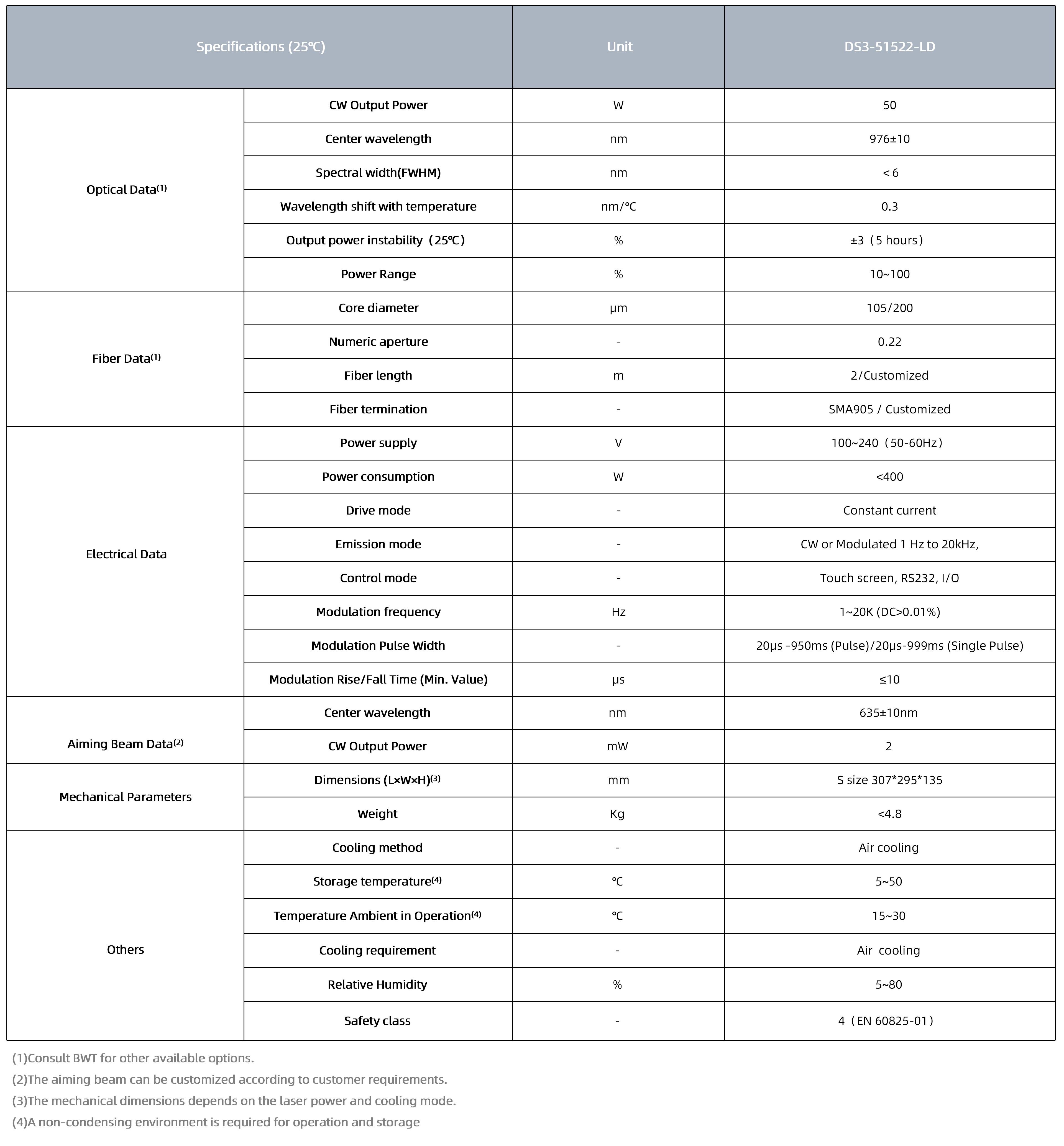 BWT DS3 50W Fiber Coupled Diode Laser Subsystem