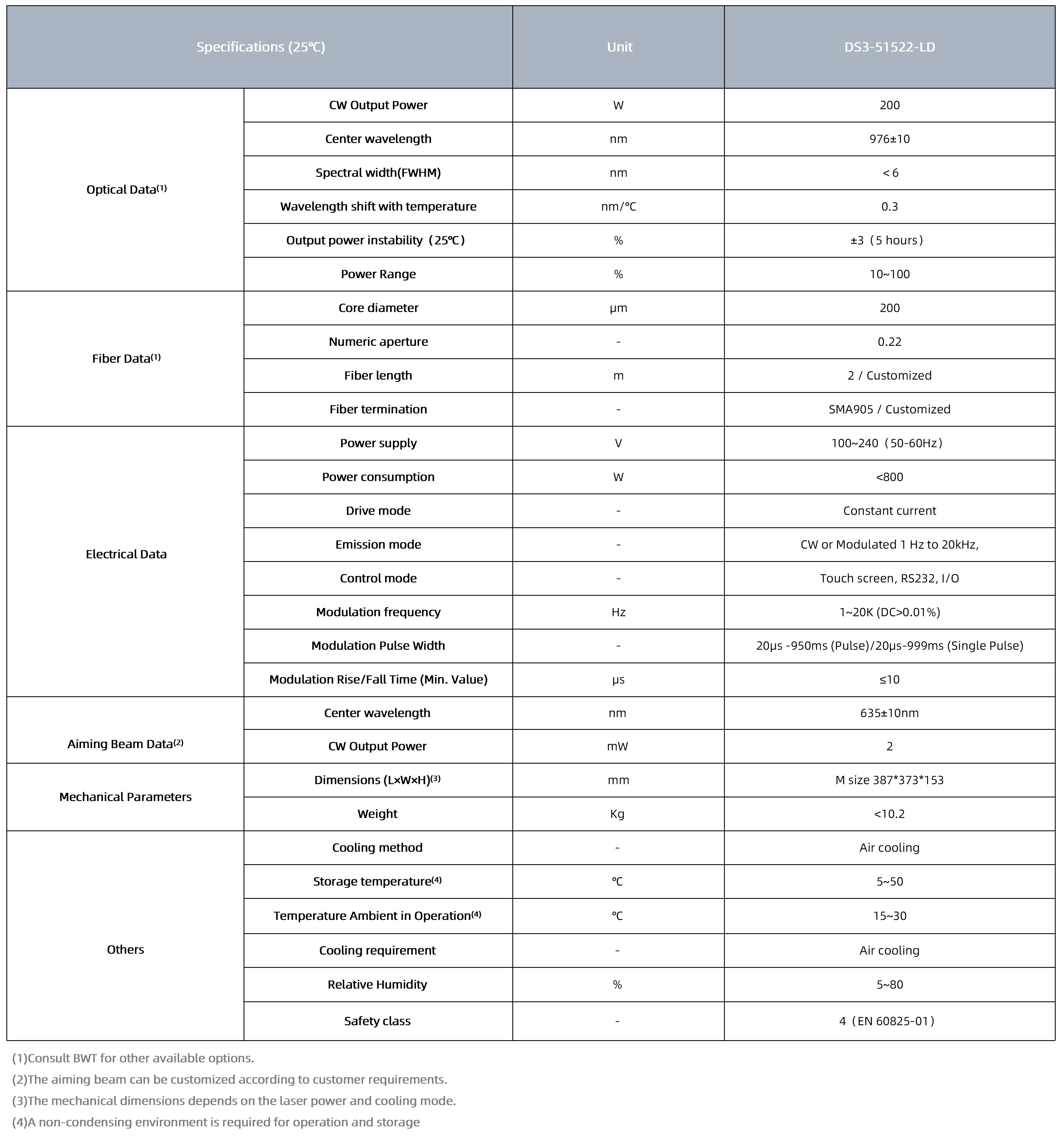 BWT DS3 Fiber Coupled Diode Laser System 200W